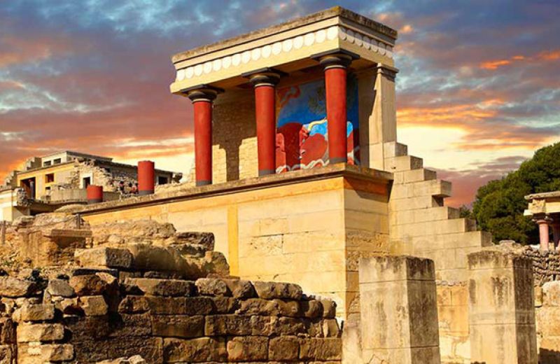 Кносский дворец: один из самых развитых городов Древней Греции и центр знаменитой минойской цивилизации. Кносский дворец был сердцем города и резиденцией легендарного царя Миноса. Этот великолепный дворец был творением мифического архитектора Дедала. С ним связаны такие великие легенды, как история Дедала и Икара, Лабиринт ужасного Минотавра и история любви Тесея и Ариадны. Первые раскопки были проведены в 1878 году Миносом Калокаириносом. За ними последовали раскопки, проведенные англичанином сэром Артуром Эвансом, который представил миру весь дворец. Впечатляющее разнообразие строительных материалов, цветной лепнины, мраморных украшений и фресок, украшающих комнаты и коридоры.